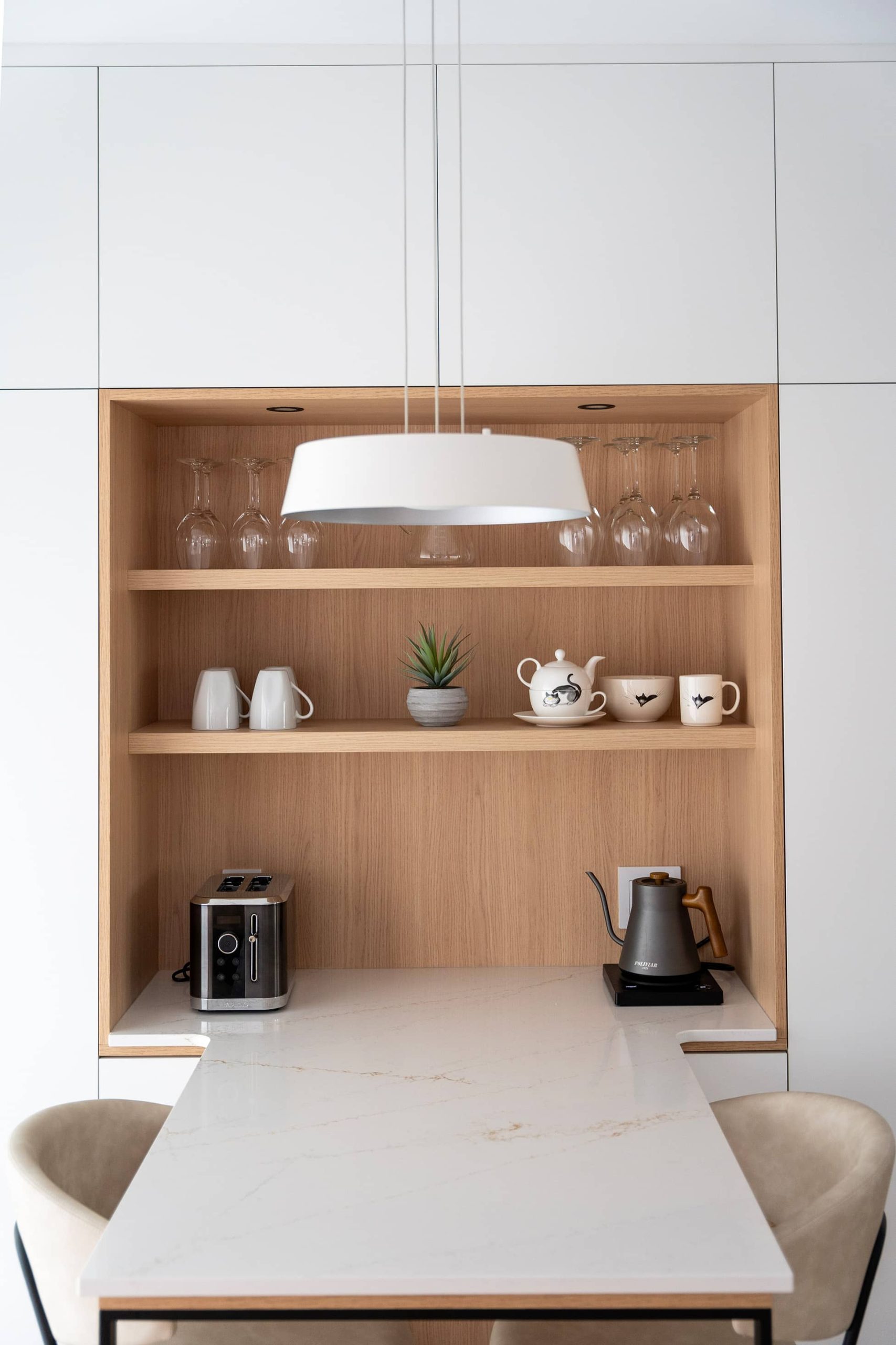 The kitchen was reimagined as the heart of the home. Custom-designed layouts improve workflow, enhance circulation, and offer storage solutions tailored to everyday habits. Clean lines, durable materials, and carefully planned lighting create a warm and inviting atmosphere, ideal for both daily routines and shared moments.