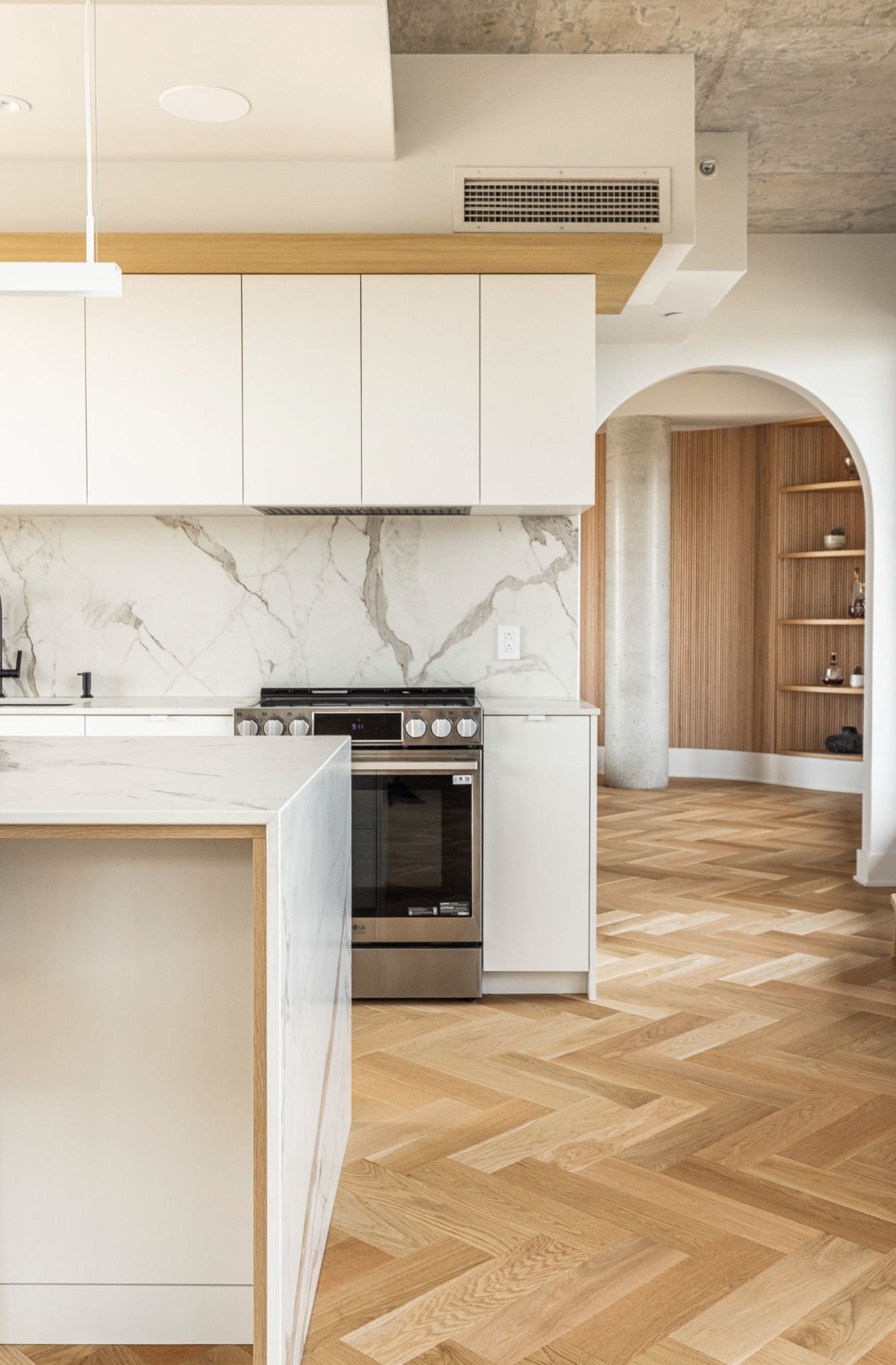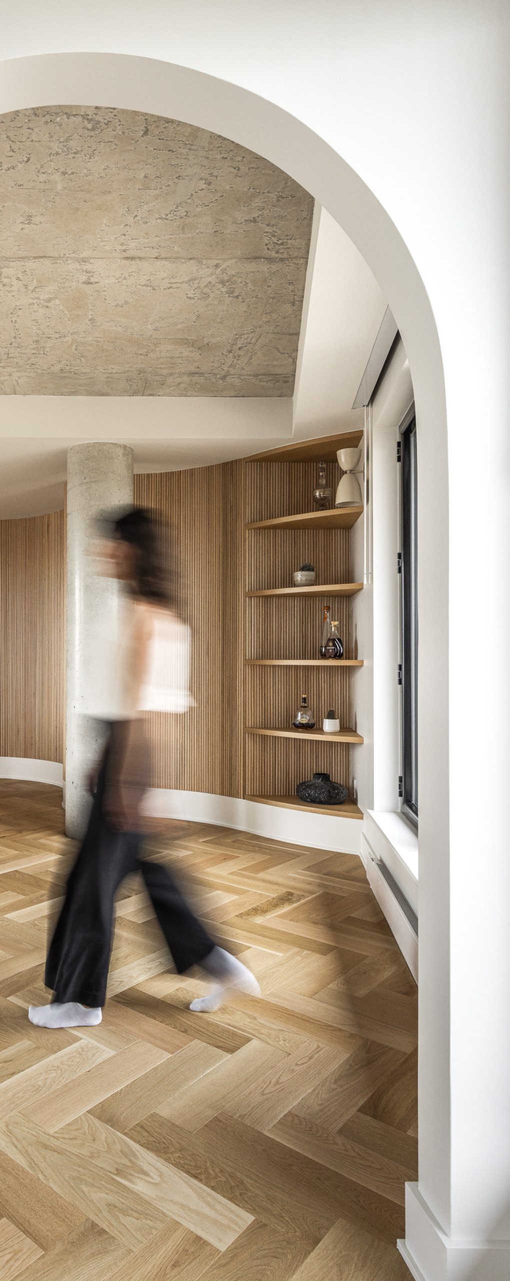 Dans ce contexte unique, notre mandat consistait à concevoir et fabriquer un mobilier intégré sur mesure, à la fois intemporel, fonctionnel et parfaitement adapté à l’architecture existante. Chaque élément a été pensé dans une approche de précision artisanale, où les lignes épurées, les volumes maîtrisés et les matériaux nobles dialoguent avec la lumière naturelle et les proportions de l’espace.